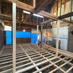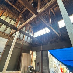 解体工事もほぼ終わり、本日から屋根葺き替え工事に入りました(^^♪